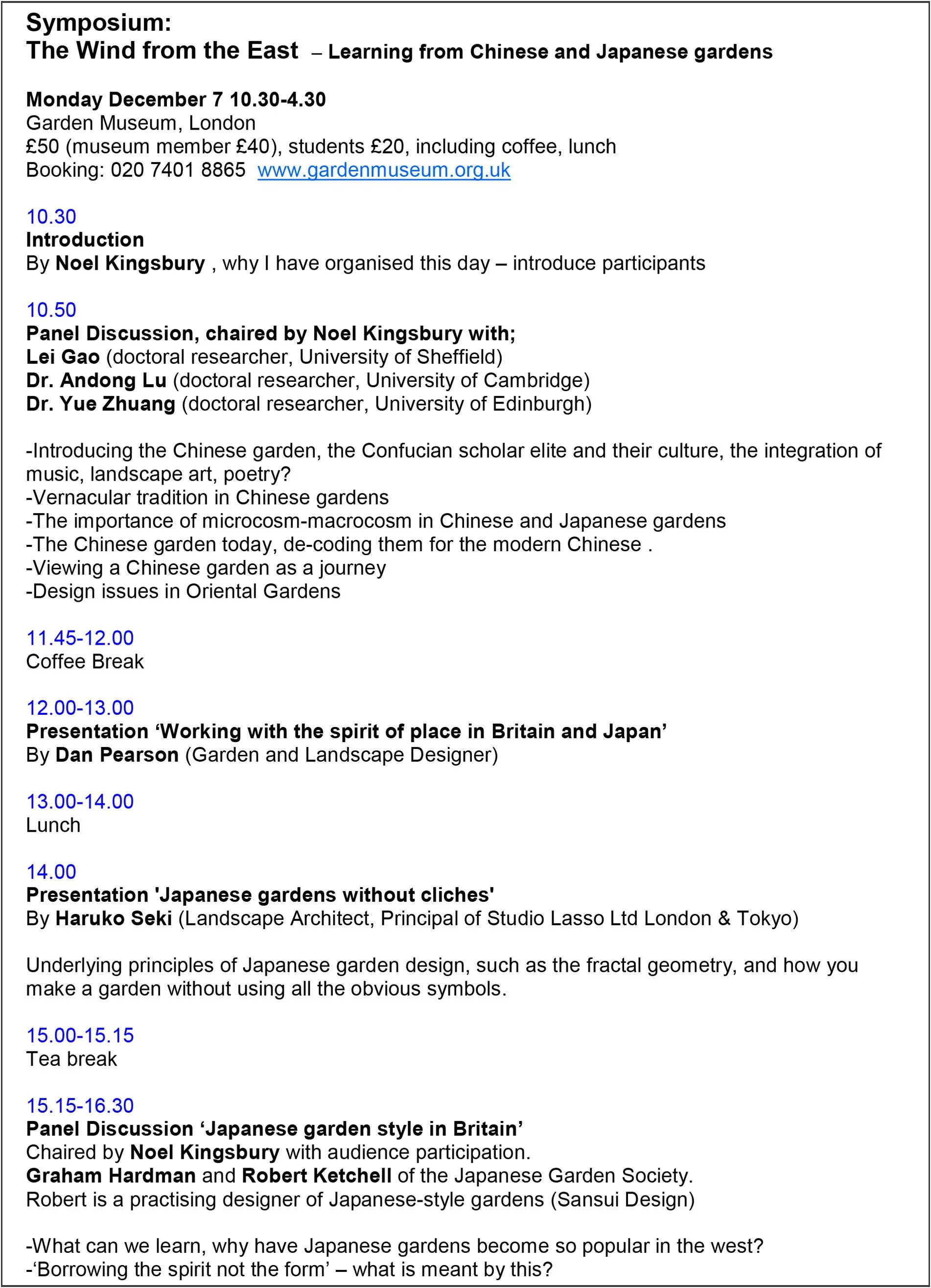 Symposium “The wind from the East–Learning from Chinese and Japanese Gardens”